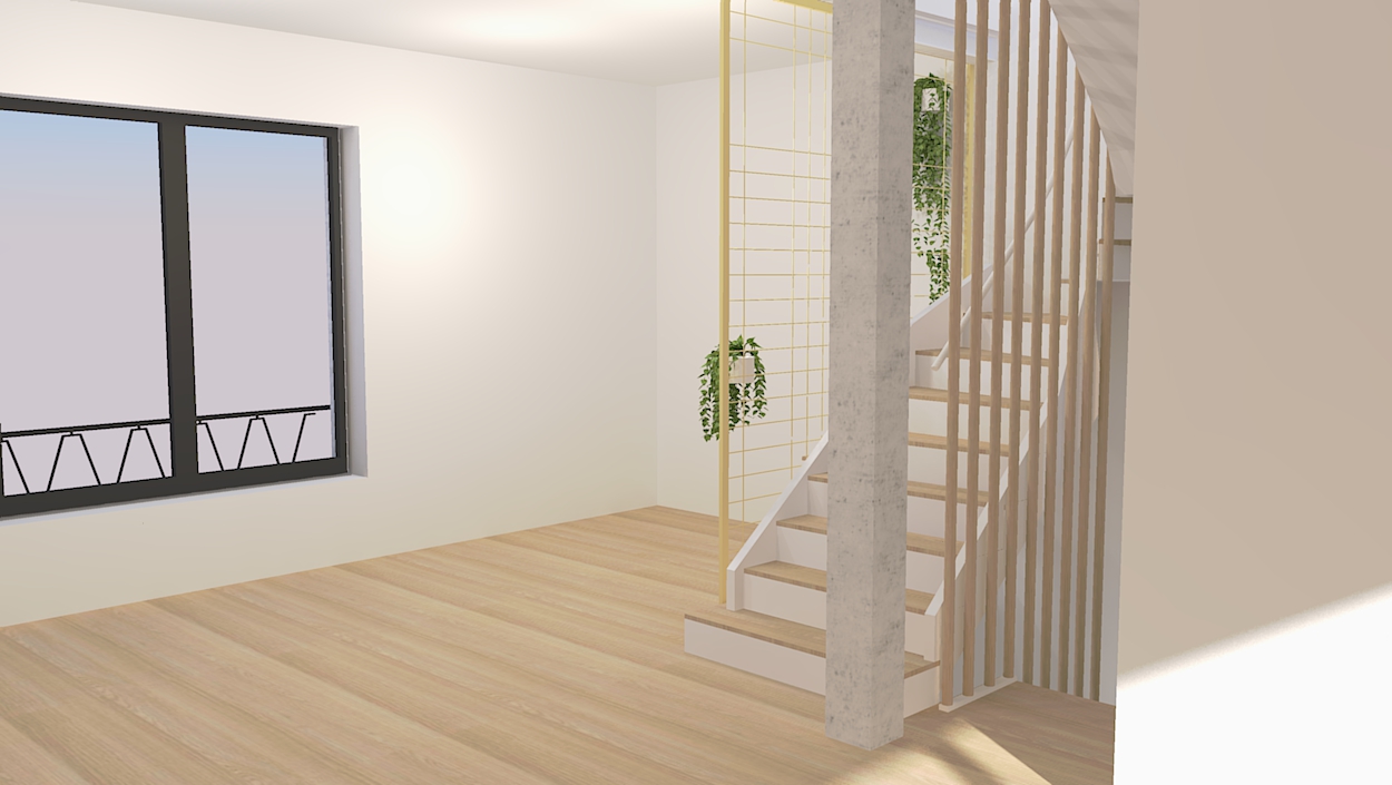 En attendant la délivrance du Permis d’Urbanisme de la seconde phase des travaux, les propriétaires souhaitent pouvoir y habiter après rénovation. La maison n’a pas connu de rénovation lourde depuis sa construction et une mise aux normes s’impose. Le rez-de-chaussée, l’étage +1 et l’étage +2 sont remise à neuf (électricité, chauffage, plomberie), certaines cloisons sont démolies pour agrandir l’espace. L’espace de vie est isolé avec des matériaux biosourcés et les châssis totalement remplacés.