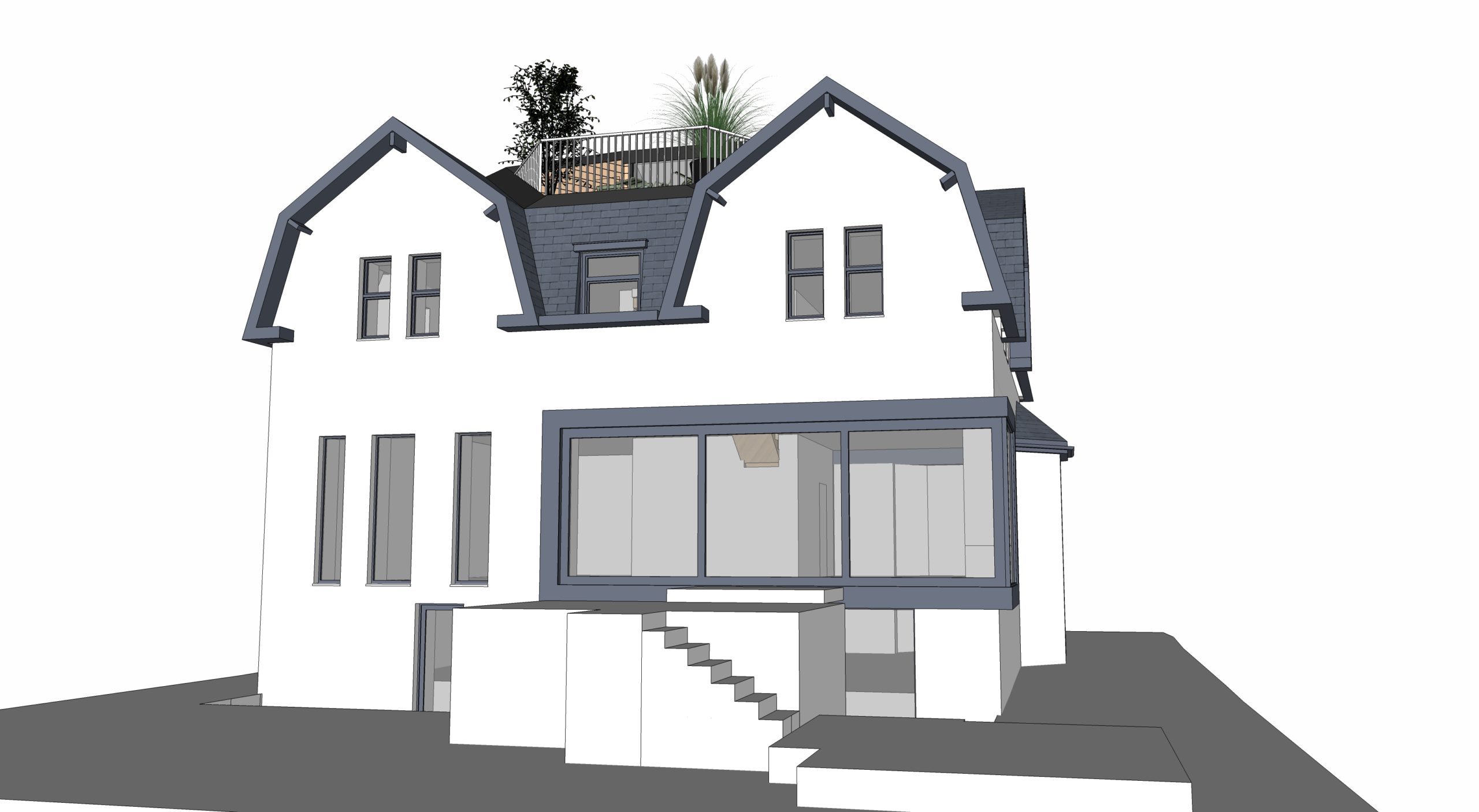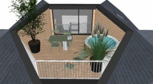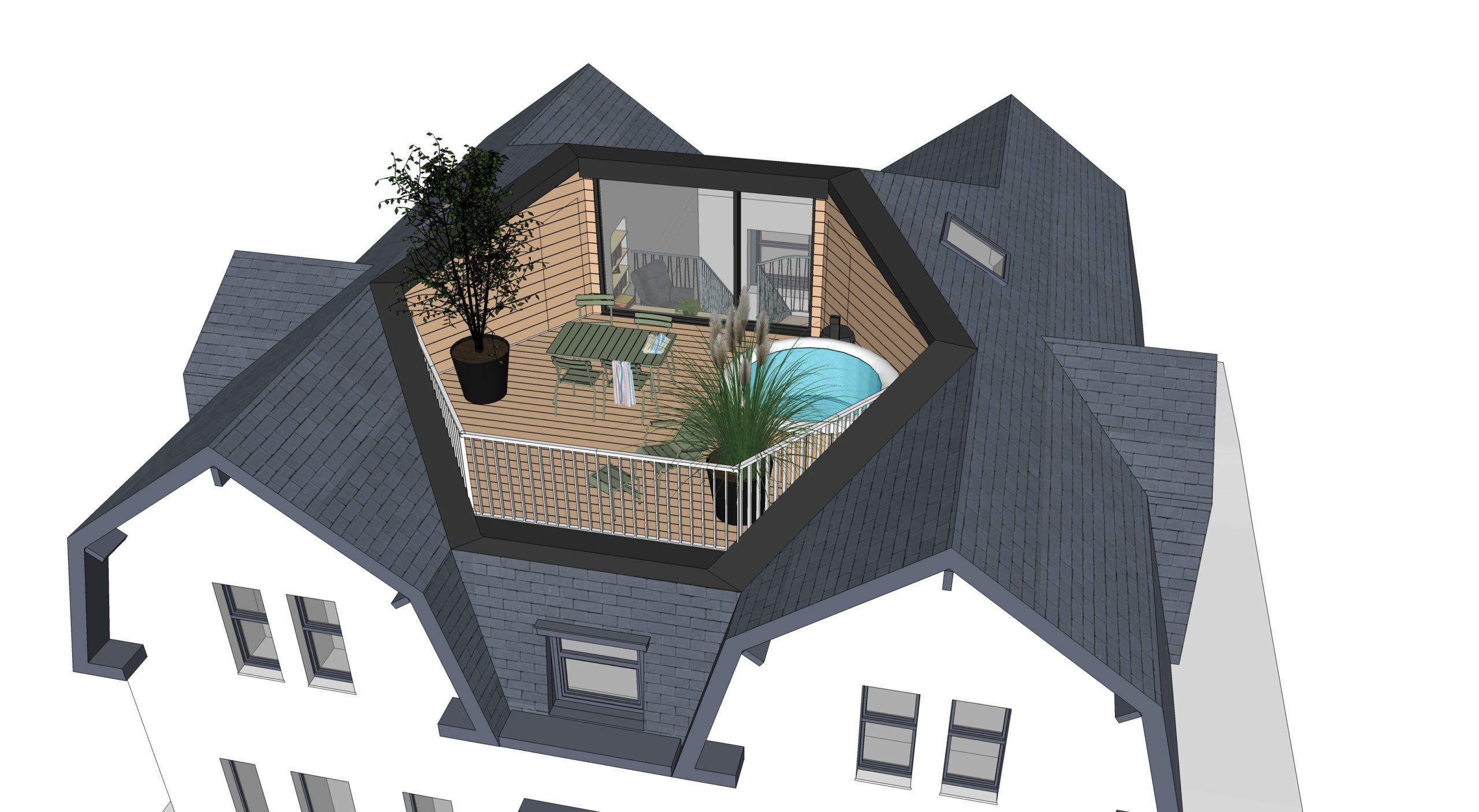 Le propriétaire souhaite intégrer une terrasse en hauteur sa maison, créer un solarium, plus exposé au soleil que la terrasse du rez-de-chaussée. Il faut donc doubler la structure de toiture existant qui n’est pas prévue pour supporter une charge de terrasse, un jaccuzzi et des bacs de plantes.